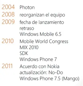 Lo cierto es que este desarrollo no fue a parar a buen puerto así que en 2008 Microsoft reorganiza el equipo inicial y proponen el desarrollo del sistema Windows Mobile 7 con Multi-Touch.