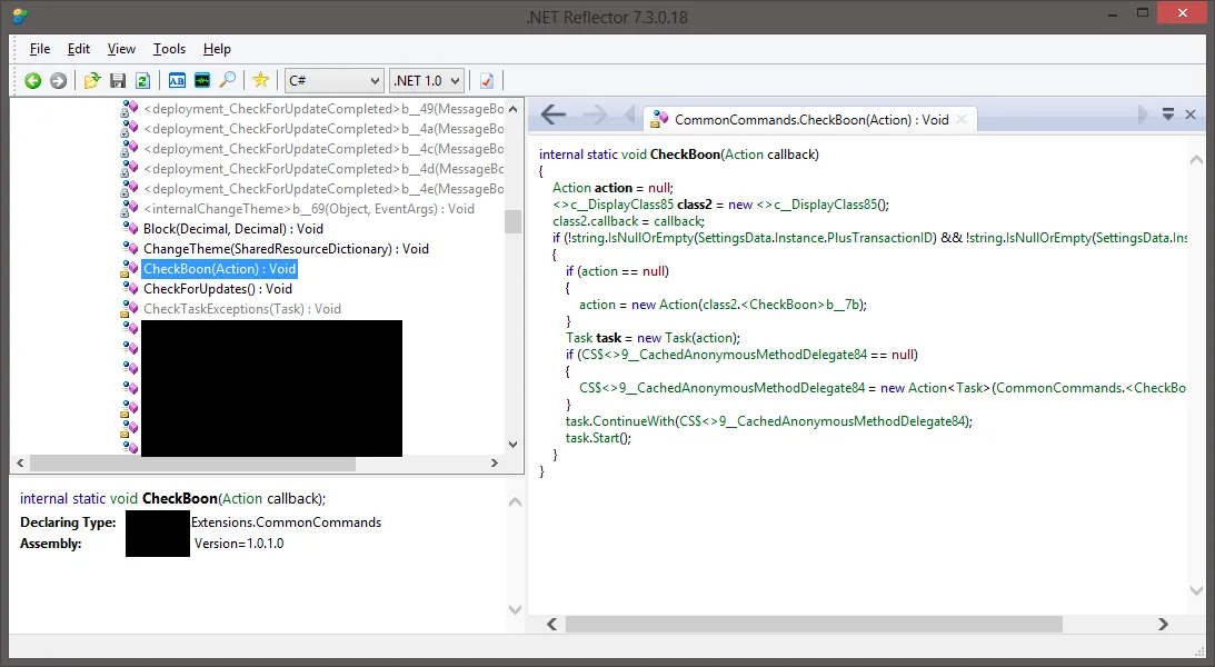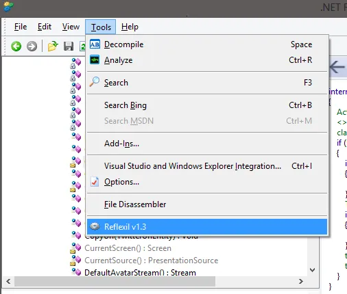 Así que hemos vuelto a la herramienta de Reflector para sacarle partido al AddIn previamente instalado: Reflexil.