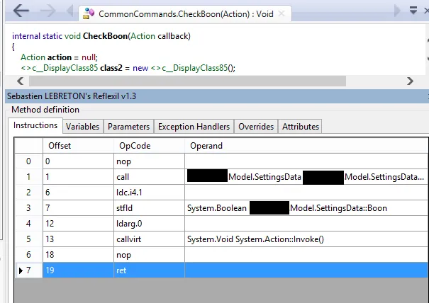 Al coger esta nueva aplicación y abrirla con Reflector, encontraremos que Reflexil ya nos ha hecho el trabajo de convertir la función que deseamos a IL.